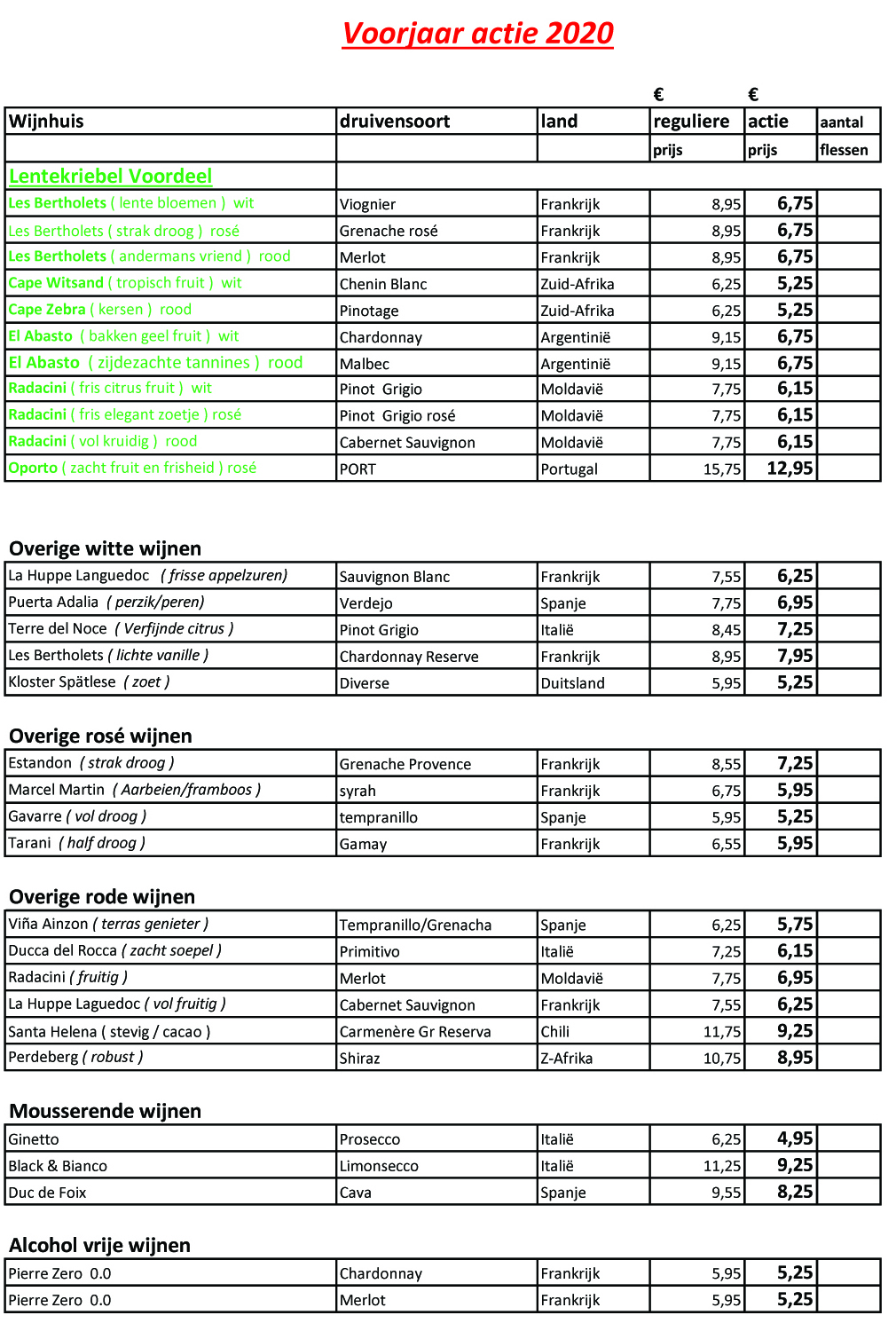 In de bijlage (zie de pdf hieronder) tref je een mooie lijst met kwaliteit voorjaarswijnen aan, welke tegen zeer aantrekkelijke prijzen voor jullie samengesteld. Laat je verrassen… en haal de lente in huis met De Wijnwereld. Zo haal je toch ook nog een stukje beleving van de club in huis nu de voorjaarscompetitie is afgelast.
