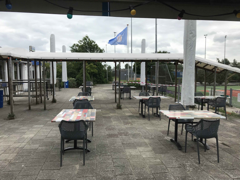 - De automatische reservering in het Pafiljoen geldt niet voor leden die een training hebben gevolgd. Zij kunnen uiteraard bij voldoende plek wel direct plaatsnemen op het terras. Dit i.v.m. de beperkte mogelijkheden qua zitplaatsen in het Pafiljoen om zo de 1,5 meter maatregel te handhaven