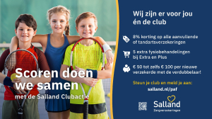 Wij doen ook dit jaar weer mee aan de Salland Clubactie. Met deze actie scoor je niet alleen voordeel voor jezelf, maar ook keiharde euro’s voor onze club! Hoe meer leden zich verzekeren bij Salland, hoe hoger het sponsorbedrag dat direct naar onze vereniging gaat. Dat betekent: meer middelen voor materialen, jeugdactiviteiten of clubfaciliteiten.